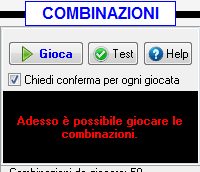 A questo punto, sulla sinistra della scheda principale (nella sezione combinazioni) il pulsante " Gioca" si attiverà e comparirà la scritta " Adesso è possibile giocare le combinazioni". Per avviare le giocate fare clic sul pulsante " Gioca", per interrompere la fase di gioco automatico sarà sufficiente premere un tasto qualsiasi o fare clic sul pulsante "Interrompi".