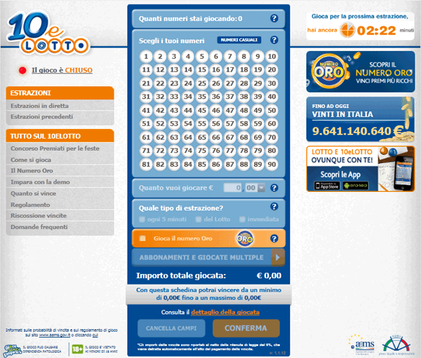 Sul sito del concessionario si deve eseguire l'autenticazione utilizzando le credenziali di accesso. Dopo essersi autenticati si deve aprire la pagina per il gioco online del 10eLotto.