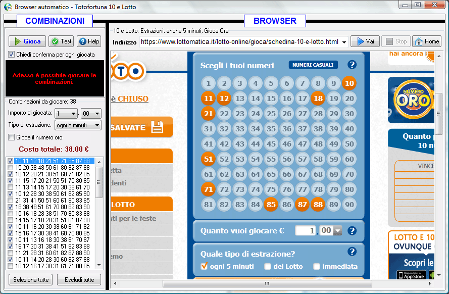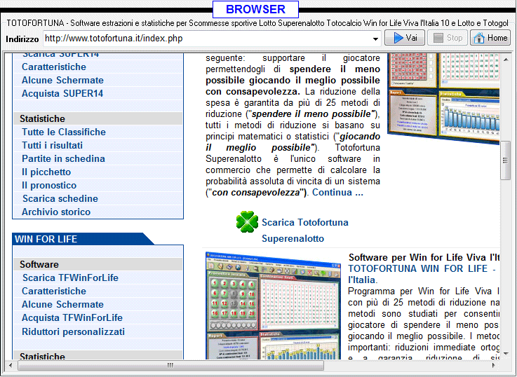| Il browser automatico di Totofortuna 10eLotto |