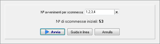 L'immagine a sinistra visualizza parametri impostati nella scheda per la riduzione condizionata. Si è scelto di sviluppare il pronostico iniziale in scommesse da 1 2 3 e 4 avvenimenti.