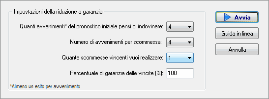 Software Scommesse Calcio > Sistema ridotto condizionato a punteggio garantito