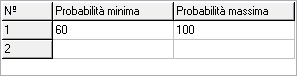 Software Scommesse Calcio > Condizione "Probabilità media"La probabilità di un esito viene calcolata considerando gli ultimi esiti realizzati dalle squadre secondo i parametri indicati dall'utente tramite nella sezione "Altre opzioni" presente nella scheda "Palinsesto scommesse". Nel caso in cui nel database non siano presenti sufficienti esiti le probabilità saranno calcolate usando la media delle quote degli esiti. La probabilità media di una scommessa è calcolata facendo la media delle probabilità degli esiti che la compongono. Le probabilità percentuali hanno un valore minimo di 0 e un valore massimo di 100. Una scommessa che ha una probabilità media del 5% avrà solo 5 possibilità su 100 di essere vincente (poco probabile), una scommessa che ha una probabilità media del 90% avrà 90 possibilità su 100 di essere vincente (molto probabile). Questa condizione consente di stabilire degli intervalli in cui devono cadere le probabilità medie delle scommesse. Per fare un esempio si supponga di voler condizionare il pronostico iniziale in modo tale che vengano considerate solo le scommesse aventi una probabilità media superiore al 60%. In questo caso sarà sufficiente inserire un intervallo di probabilità impostando 60 come probabilità minima e 100 come probabilità massima: