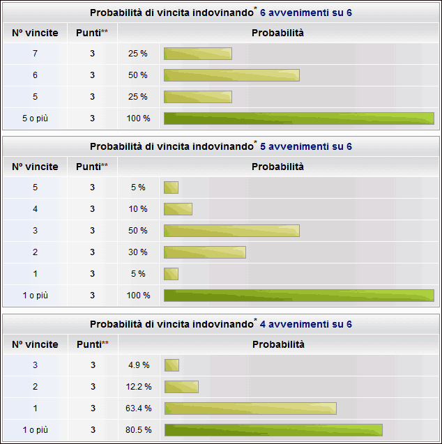 L'obbiettivo è quello di giocare 10 scommesse composte da 3 avvenimenti sapendo di indovinare non meno di 4 avvenimenti del pronostico iniziale (notare che il 5 avvenimento è sicuramente indovinato, quindi in realtà basterà indovinarne 3 degli altri 5):