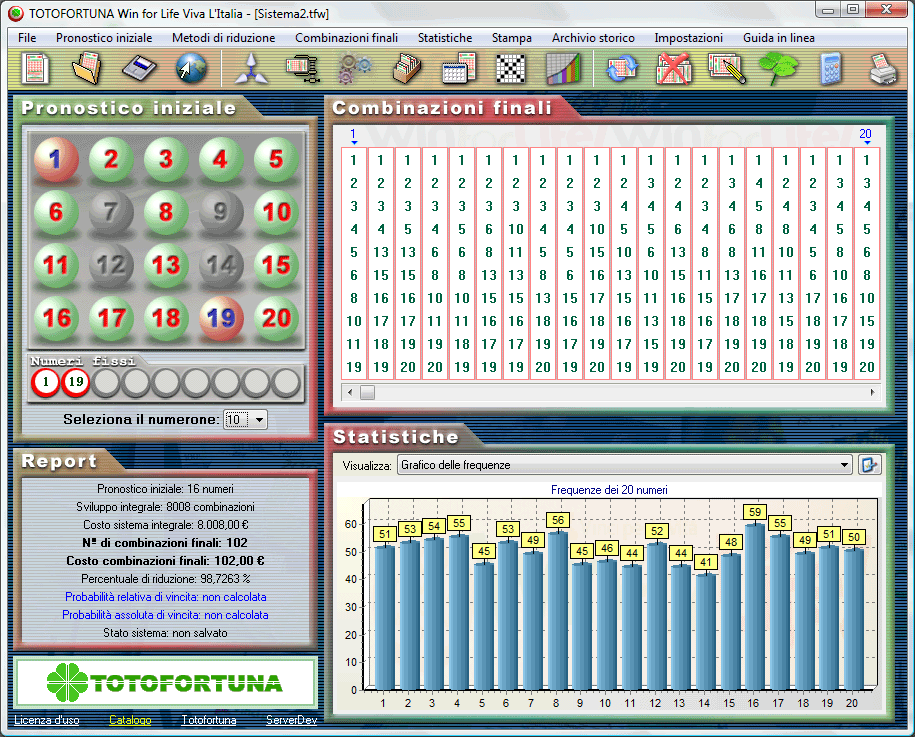La scheda principale di Totofortuna Win For Life Viva l'Italia